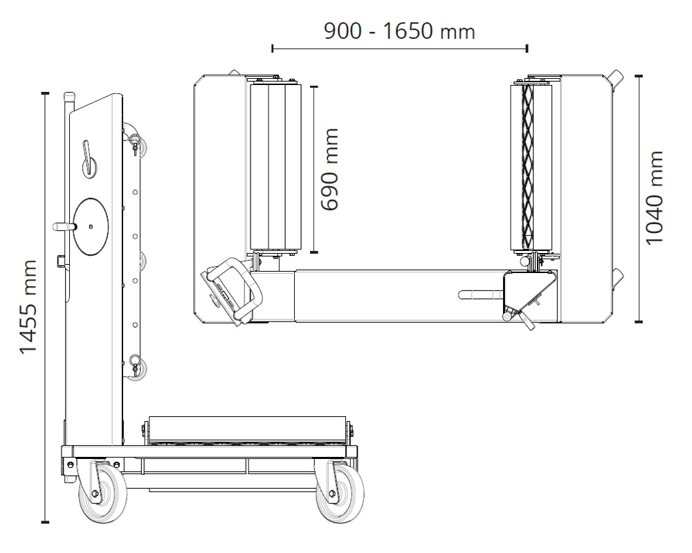 Ułatwia demontaż i montaż kół o średnicy do 2400 mm i szerokości 1200 mm.