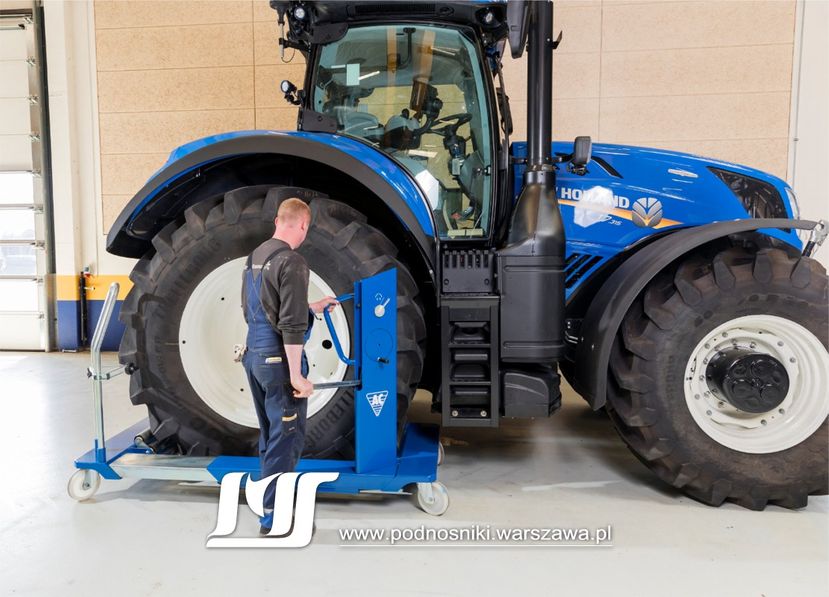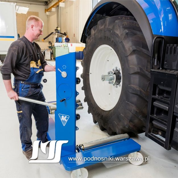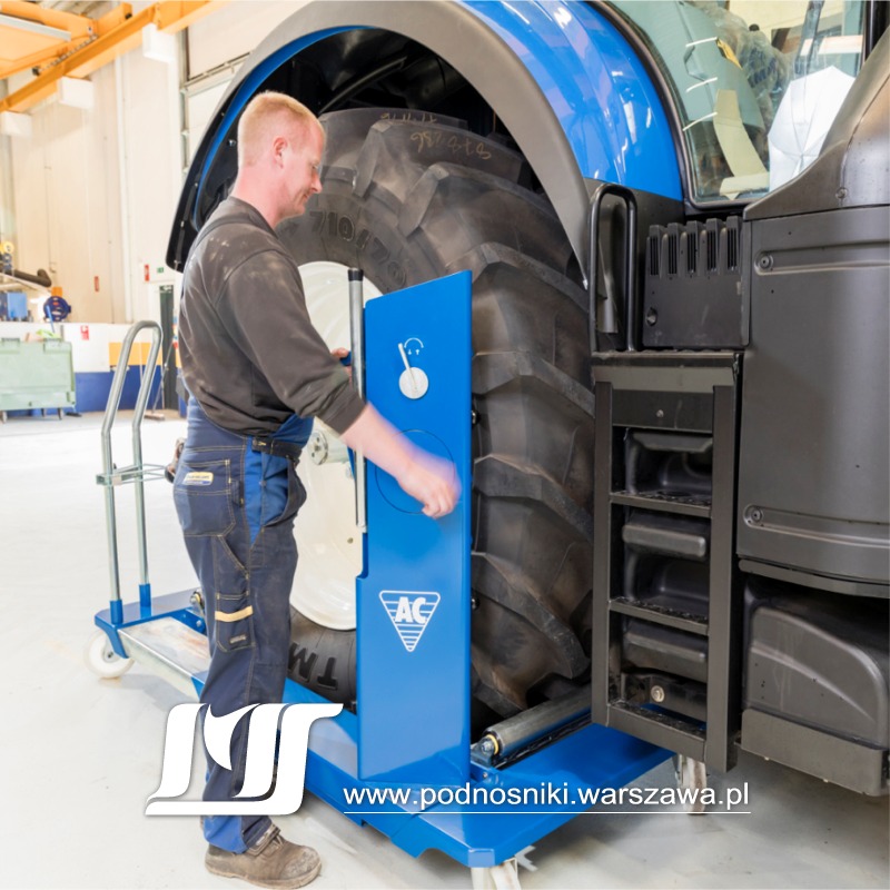 Wózek do kół WT1500NT o udźwigu 1,5 tony do obsługi kół samochodów ciężarowych, ciągników i maszyn rolniczych oraz budowlanych. Producent: AC Hydraulic - Dania.